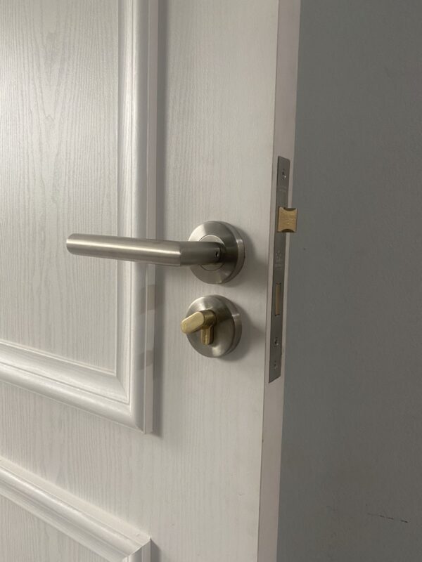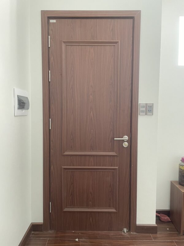 Ảnh chụp mẫu cửa thực tế cửa và khóa khi hoàn thiện tại công trình.