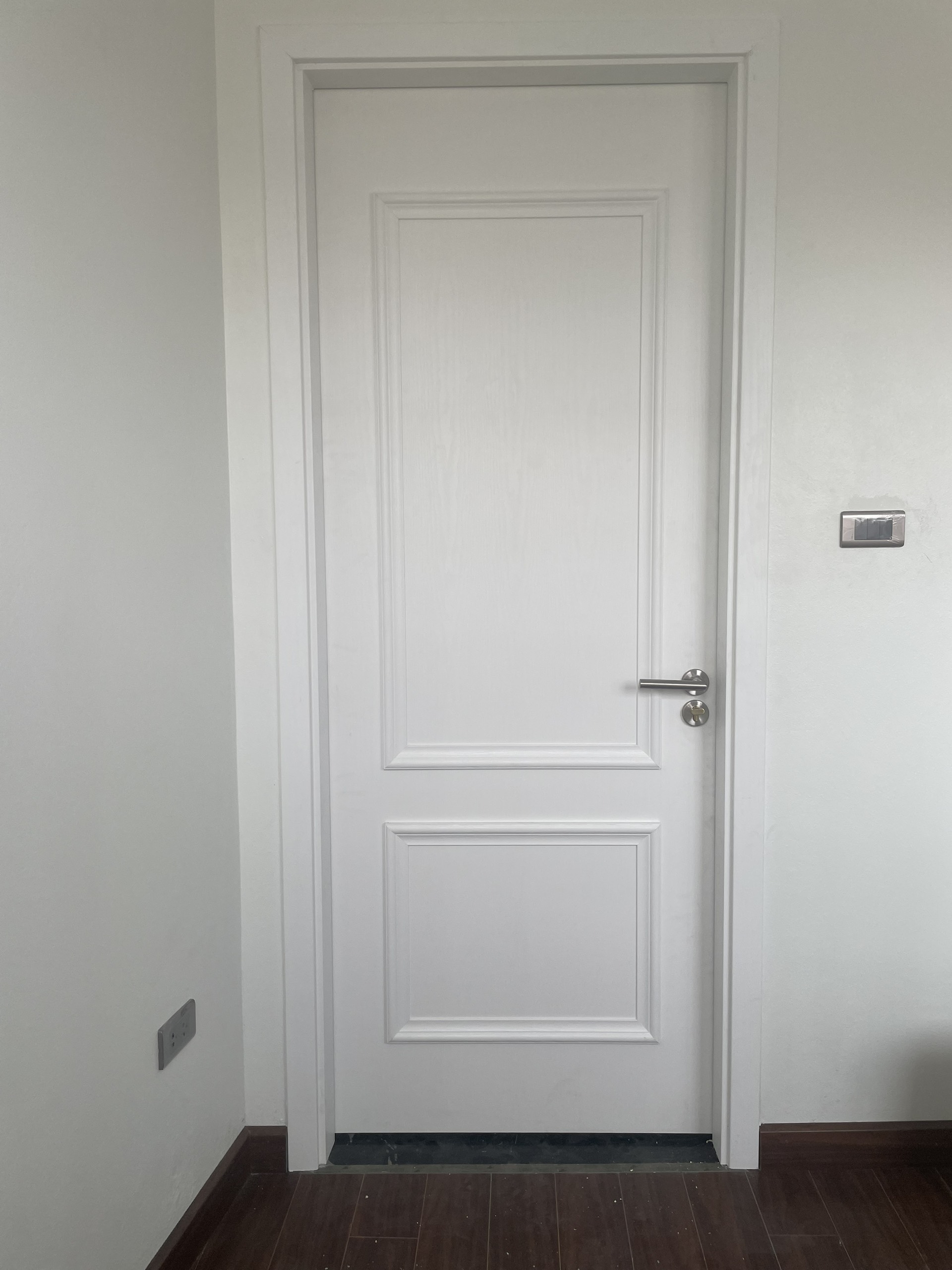 Cửa gỗ nhựa composite chống nước mẫu phào nổi màu trắng vân gỗ