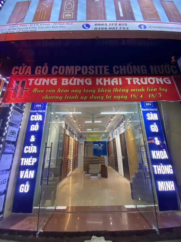 Với diện tích cửa hàng 50m2 nằm trên mặt đường Nguyễn Công Trứ (trục đường QL10) cùng với đó là rất nhiều sản phẩm về cửa compoiste, cửa thép vân gỗ, sàn gỗ và khóa thông minh tại cửa hàng hứa hẹn sẽ là điểm đến được rất nhiều gia đình khi đã và đang dự định làm nhà. Tới đây Qúy khách hàng được trực tiếp trải nghiệm sản phẩm và được phục vụ bởi đội ngũ nhân viên tư vấn nhiệt tình và có kinh nghiệm lâu năm trong lĩnh vực Cửa. Cam kết mang tới cho khách hàng những sản phẩm chất lượng nhất, chế độ hậu mãi tốt nhất và giá thành ưu đãi nhất.